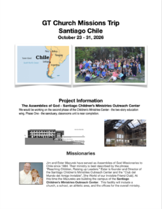 Anyone interested in joining Pastor Helms on a missions trip to Santiago, Chile will gather for an informational meeting following the 10:45 AM service.
